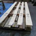 ウォールナット干し作業に入りました。板が反らないように、きっちりマンボウを入れて、綺麗に積み上げていってます。