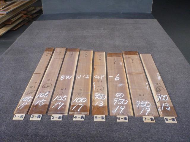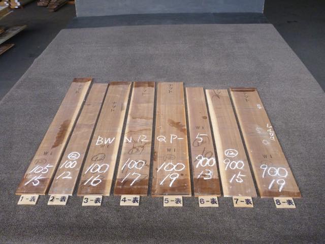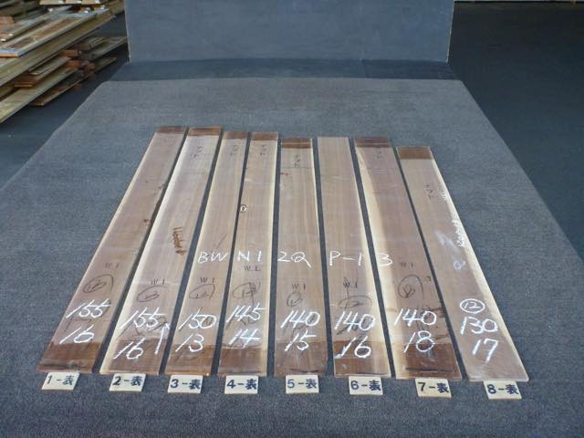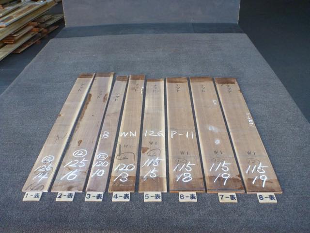 ウォールナット薄板は、原木を製材している製材所でなければ作れない「特別なウォールナット材」です。特に柾目板の薄板は原木の製材時最も良い所『オオトロ部分』で製材していますので、狂いが出にくい・色合わせがしやすい等の特性と価値があります。