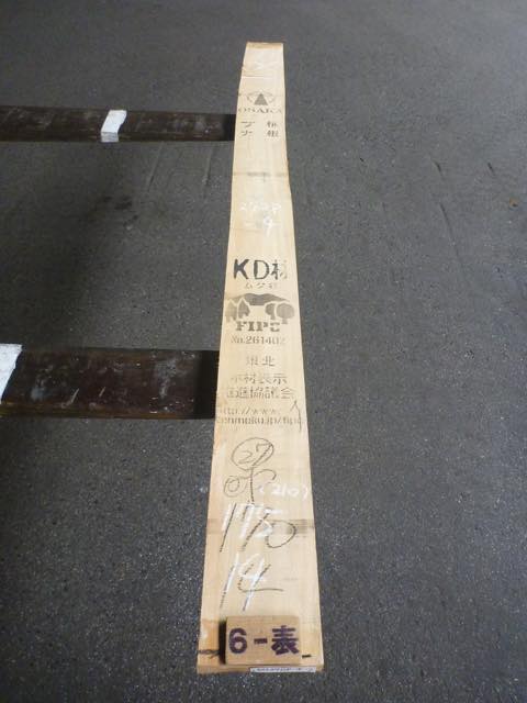 備考:両面無節、実長2100ミリ節の為1750ミリ寸検、白身 木表100% 木裏70%