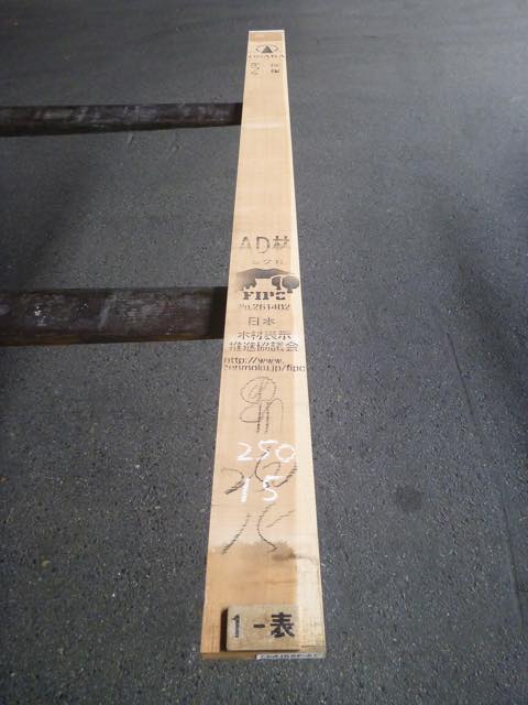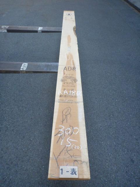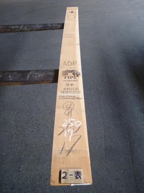 備考:両面無節、木表ハブシほんの少し、縦反り有り、赤身 木表5% 木裏10%