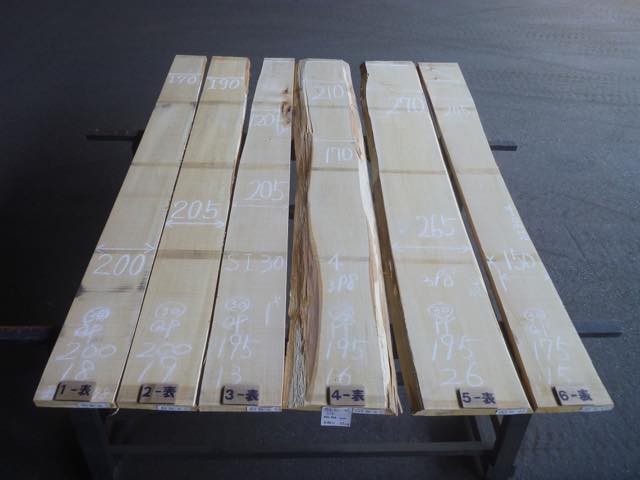 備考:両耳付き板目、両面無節、木裏葉節ほんの少し、白身 木表100% 木裏100%
