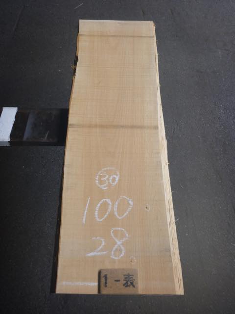 備考:両耳付き板目、両面無節、木裏カラス1ヶ、両面葉節ほんの少し、白身 木表100% 木裏100%