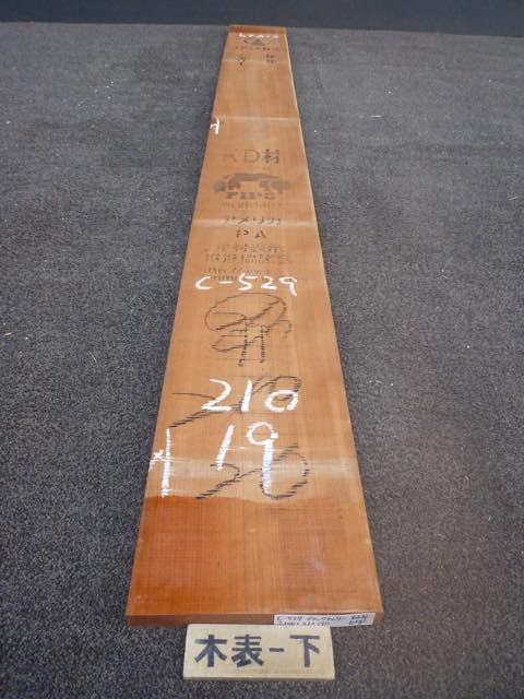 原木番号:16922、ペンシルベニア産、人工乾燥材、両面無節、実巾150ミリ割れの為120ミリ寸検、タテ反りほんの少し、約6kg