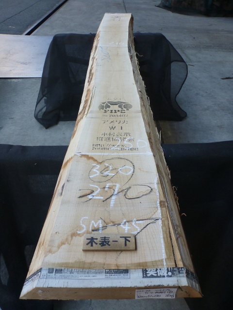 ウィスコンシン産、人工乾燥材、原木番号:250775、約45kg、白身木表70% 木裏50%、両面無節、カップほんの少し、弊社等級:B