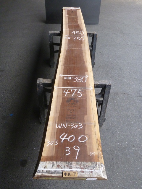 WN-307・308・309『同じ産地・同じロット材です。色合いが揃います。』の3枚で長さ4000ミリ巾800ミリ(剥ぎ)の超大型天板が製造可能です。3枚お求め頂いた御客様は184,530円→166,077円 お得情報