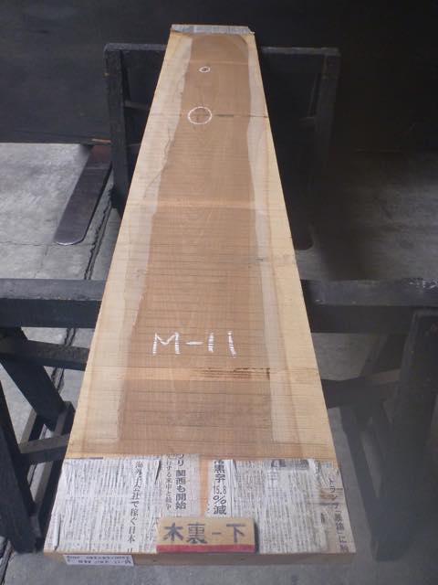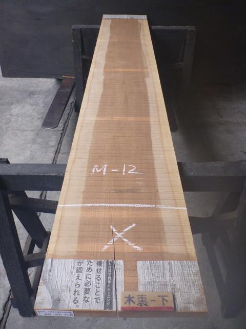 東京大学演習林、原木番号:5127、北海道産、天然乾燥材、両面無節、巾反りほんの少し、トラ有り、木表90% 木裏95%、約54kg