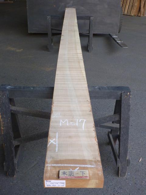 東京大学演習林、原木番号:5127、北海道産、天然乾燥材、両面無節、巾反りほんの少し、トラ有り、木表80% 木裏95%、約34kg