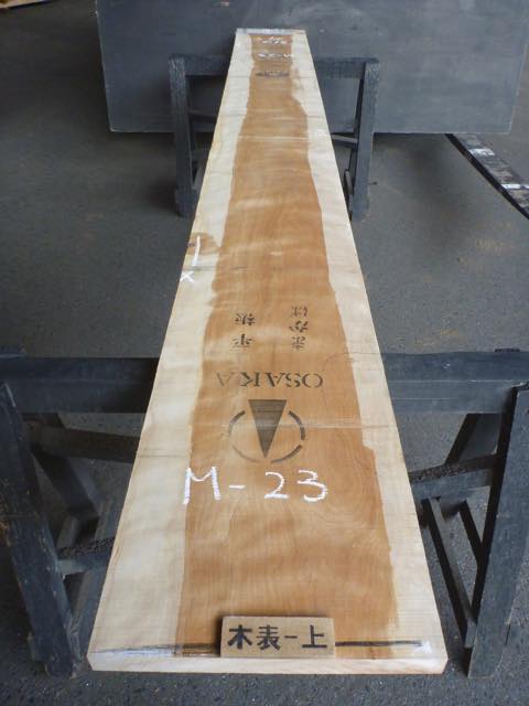 東京大学演習林、原木番号:5127、北海道産、天然乾燥材、両面無節、実巾220ミリ有りカラスの為170ミリ寸検、トラ有り、約26kg