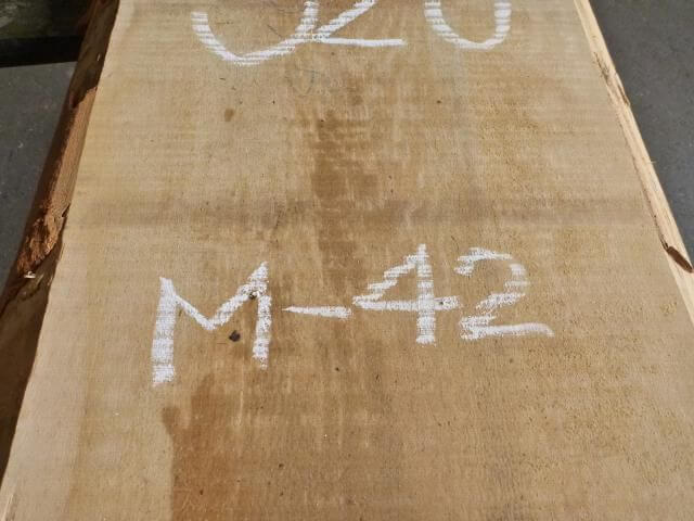 東京大学演習林、原木番号:5127、北海道産、天然乾燥材、両面無節、巾反りほんの少し、トラ有り、木表90% 木裏95%、約41kg