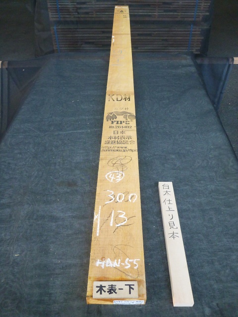 備考:板目、両面無節、両面カネクイほんの少し、原木番号 4、13kg、白身 木表90% 木裏70%