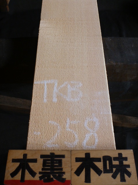 備考:天然乾燥、四方無節、うすアテほんの少し、含水15.5%(2024年8月22日測定)、赤身85%、約10kg